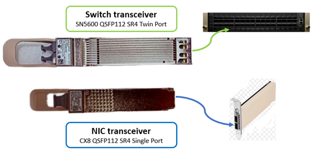 Switch transceiver ·         SN5600 QSFP112 SR4 Twin Port – Dell PN 070HK1 (same as