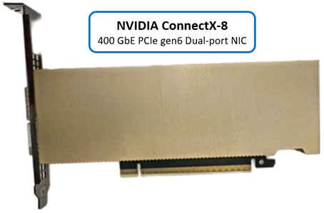 As mentioned previously, the NIC used in the F910 nodes for 400GbE connectivity is NVIDIA’s ConnectX‑8 PCIe Gen6 adapter with dual QSFP‑112 ports in a standard half‑height, half‑length form factor.