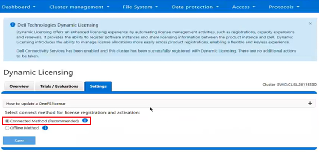 The basic process to configure OneFS Dynamic Licensing in ‘Connected Method’ is as follows: