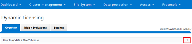 Note the ‘+’ icon within the ‘How to update a OneFS license’ text box: