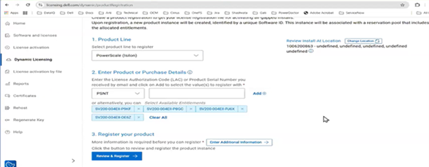 - From the Dell Licensing Portal, provide the serial number and all the service tags of the PowerScale cluster that is to be registered offline.
