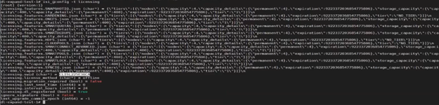The Dynamic License gconfig parameters can be queried from the CLI to confirm that the PowerScale cluster is both registered with the dynamic licensing back end, and that the license method is ‘offline’: