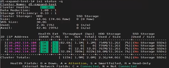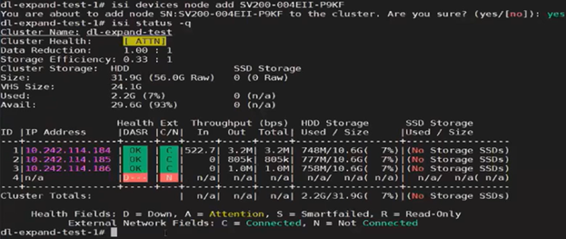 Next, one of the nodes is SmartFailed, removing it from the cluster: