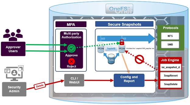 Secure snapshots are predicated upon OneFS multi-party authorization (MPA), which prevents a user from executing configuration changes on snapshots and snapshot schedules without additional approval.