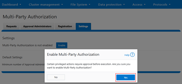 # isi mpa settings global modify –enable true # isi mpa settings global view Multi Party Authorization is enabled