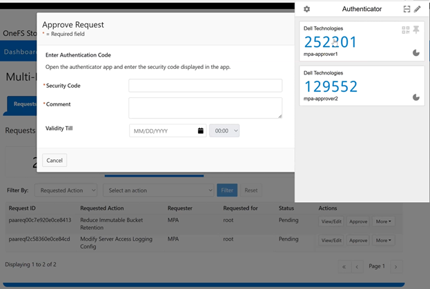 The approver(s) then use their time-based one-time password (TOTP) authenticator application to generate a security code: